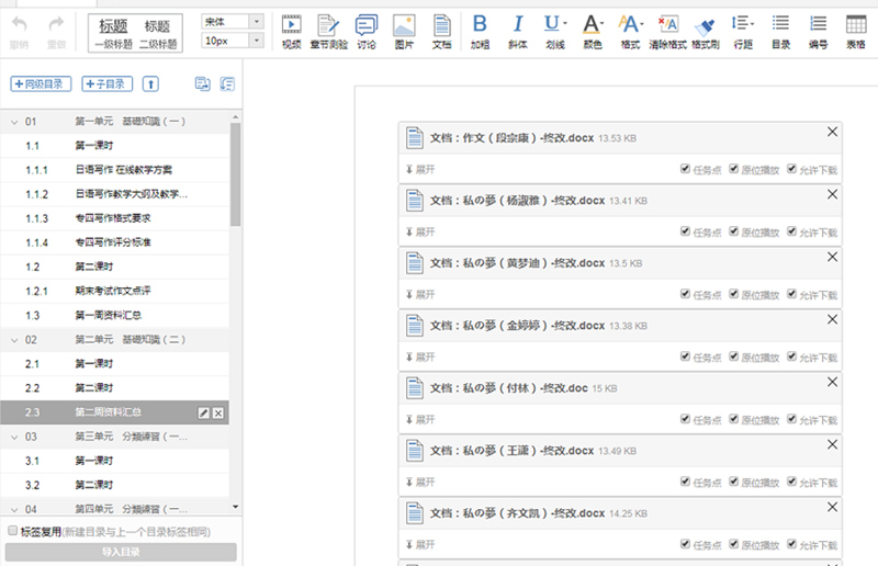 4. 课后及时将课程中完成的最新资料及录屏链接上传至超星,以便学生对当天所学知识进行复习。