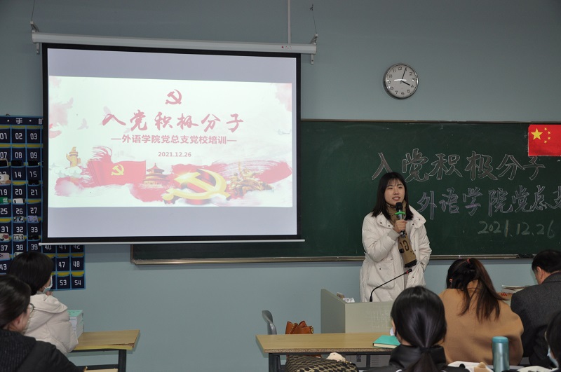 在深入学习、贯彻党的十九届六中全会精神之际,上外贤达外语学院党总支第二届中级党校于2021年12月26日在崇明校区开班。党校开班由党总支委员、学生党支部书记孙琳主持,学院党总支余其华书记和61名入党积极分子出席了开班仪式。