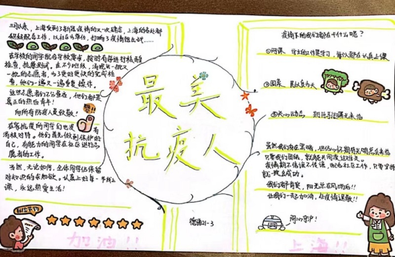 校园文化艺术节的举办不仅为每位同学提供一个展示艺术才华的大舞台,也是学校精神文明建设的重要组成部分,充分展示了贤达外院学子的良好风貌和综合素质。作品表达了同学们在疫情下的美好愿望,展现了抗疫志愿者的美丽身影。疫情终有时,春暖花自开。本届 “疫情下的校园文化艺术节”收到了不少同学的作品,经学院团委、学生会共同负责收集和评选。最后通过层层审核把关,评选出三份优秀作品,见下图。