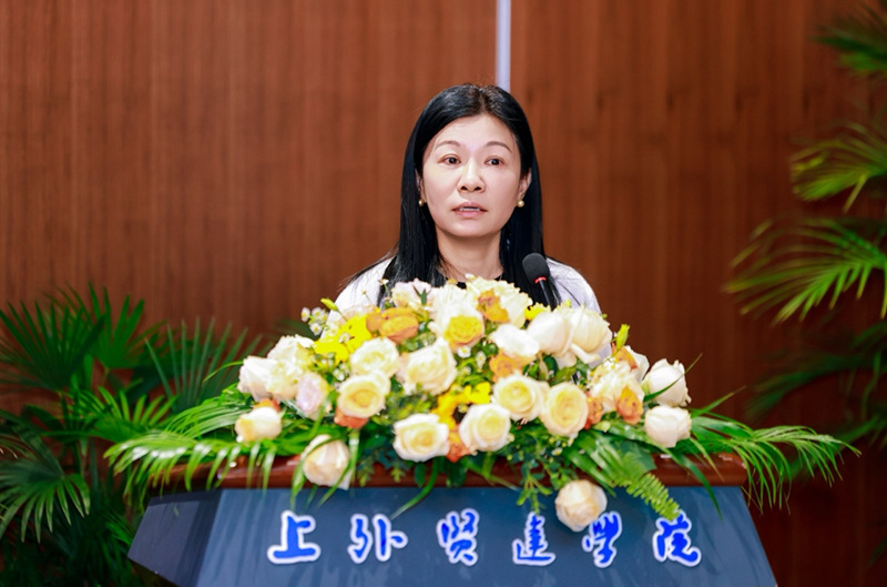 中国出版集团东方出版中心副总编辑、上海中版图书有限公司董事长、上海书刊发行协会监事长刘佩英女士系统介绍了东方出版中心在“世界历史文库”“区域国别极简史”等国家出版项目中的建设成果,强调出版机构在推动区域国别研究知识体系建设、促进学术成果传播、服务国家战略方面发挥着重要作用,并期待与上外贤达学院进一步深化合作。